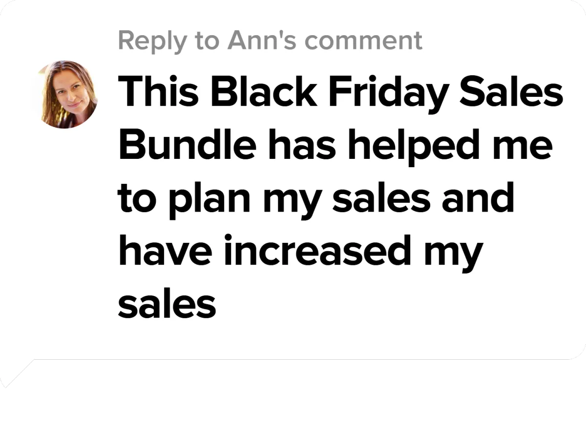-With this done for you Black Friday Sales Bundle, you will save hours brainstorming, designing, and strategizing how to maximize your sales.